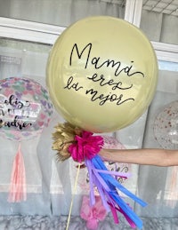Burbuja tamaño GIGANTE CON HELIO, personalizada con pintura y el mensaje que desees + listón, una base y flores!!